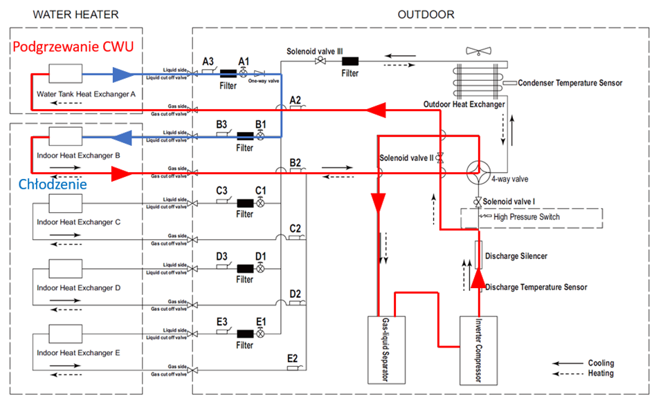 Rysunek 2 - Schemat chłodniczy odzysku ciepła (chłodzenie + podgrzewanie cwu)