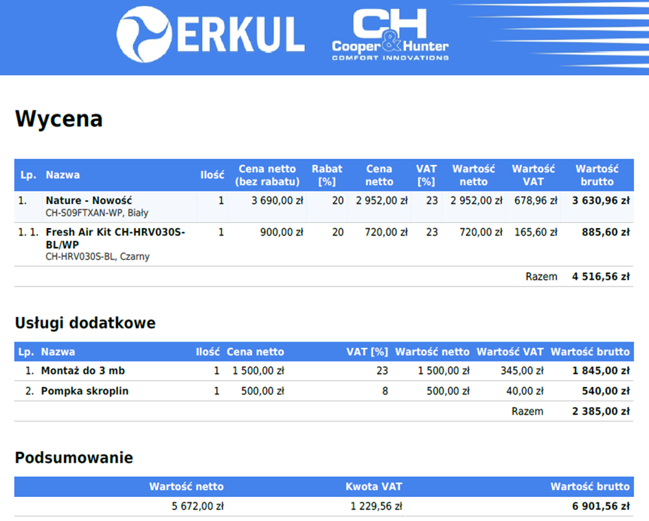 - szybkie generowanie profesjonalnych ofert dla klientów.
